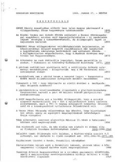 Kulcsár Kálmán igazságügyi miniszter szerint valószínűleg népszavazás dönt majd az új alkotmány sorsáról. – A SZOT szerint a sztrájktörvényben nemcsak a szakszervezeti tagoknak, hanem minden dolgozónak meg kell adni a munkabeszüntetéshez való jogot. – A sztrájktörvény elfogadásának megakadályozására akciószövetséget alapít több független társadalmi és szakszervezet. – Az Elnöki Tanács döntése értelmében február 1-jétől megszűnik az OTP és a takarékszövetkezetek monopóliuma a lakossági betétek kezelésére.
