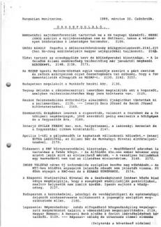 Lukács János, az MSZMP KB titkára közli: az utóbbi másfél évben 120 000-en léptek ki a pártból, és 20 000 új tag lépett be. Az MSZMP budapesti reformköre azt javasolja, hogy a párt centruma és reformszárnya szigetelje el a fundamentalistákat. – Bejelentik a dohányipari termékek 6, a festékek 8, valamint a hűtőgépek és a fagyasztók 11%-os áremelését.