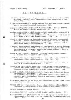 Érdekegyeztető tárgyalások folynak a szakszervezetek és a kormány között, de gazdasági kérdésekben továbbra is jelentős a véleménykülönbség. – Az MSZP továbbra is amellett foglal állást, hogy a köztársasági elnököt még a parlamenti választások előtt népszavazással válasszák meg. – A Legfőbb Ügyészség perújítási nyomozást rendelt el a néhai Mindszenty József hercegprímás és társai ügyében.