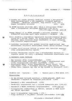 A kormány dönt a Belügyminisztérium és a Honvédelmi Minisztérium átszervezéséről. A belügy területén különválasztják az állambiztonsági és a közbiztonsági feladatokat, a honvédelmi tárcát pedig kettéválasztják egy katonapolitikai feladatokkal foglalkozó részre és a fegyveres erőkre. Kárpáti Ferenc vezérezredes tartalékállományba helyezését kéri. – Megkezdődik az MSZMP XIV. kongresszusa; szervezői nem ismerik el az októberi pártkongresszus határozatait.