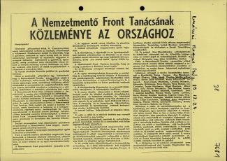 Horn Gyula külügyminiszter ismerteti a Nemzetmentő Tanácstól kapott üzenetet, amelyben hangoztatják: Románia új viszonyt kíván kialakítani Magyarországgal s fel akarja számolni a kapcsolatok feszültség forrásait. – Ismét zavartalan az áthaladás a magyar–román határon, így a segélyszállítmányok is újra elindulhatnak.